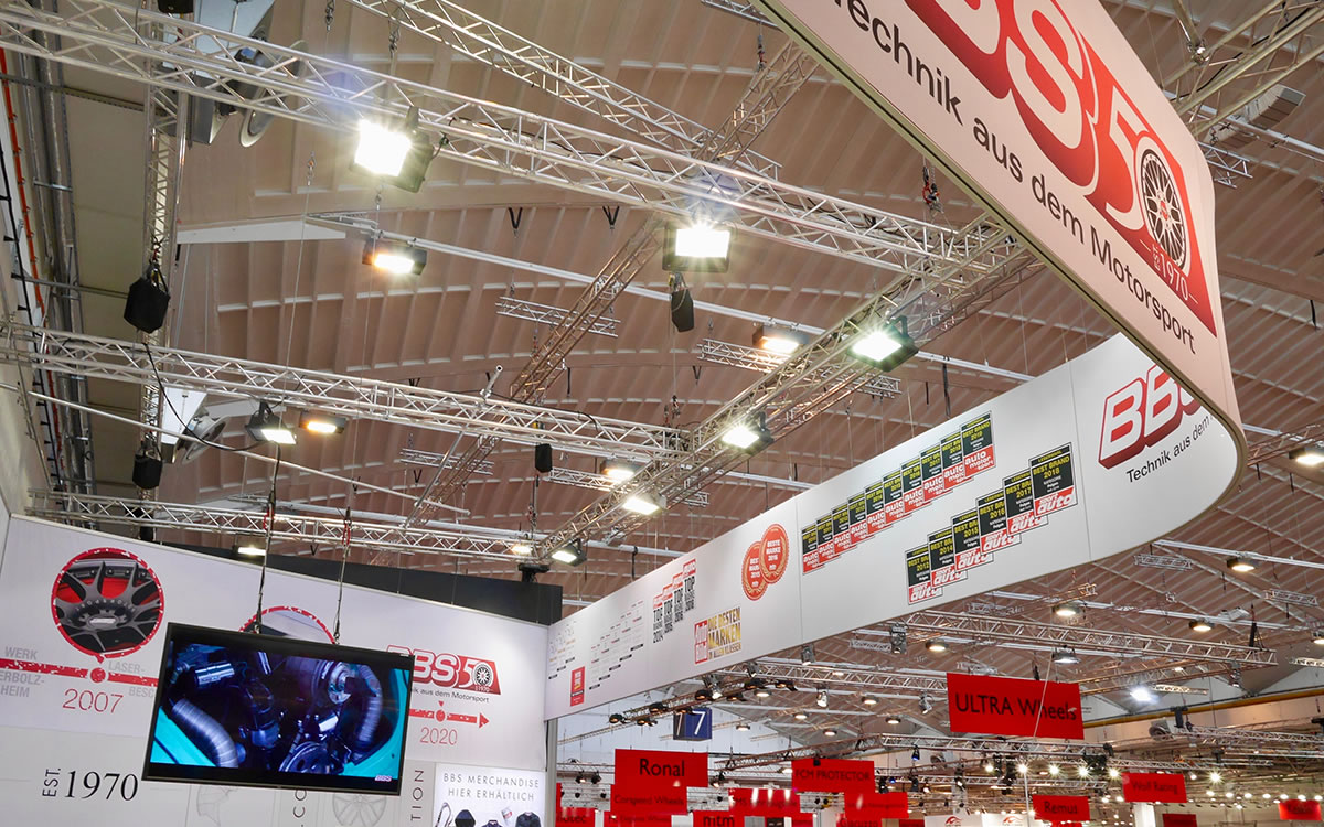 Erste Messestandplanung BBS AG - Motorshow Essen 2000 mit Siegfahrzeug von M.Schumacher/ Ferrari